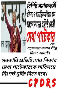 অবৈধ অভিবাসী" চিহ্নিত করার নামে দেশজুড়ে বাংলা ভাষাভাষী মানুষের নির্যাতন ও হেনস্থার ঘটনার তীব্র নিন্দা জানিয়ে মানবাধিকার সংগঠন সিপিডিআরএস-এর বিবৃতি-           মুর্শিদাবাদ জেলায় সাম্প্রদায়িক উত্তেজনা ও মৃত্যুর ঘটনায় গভীর উদ্বেগ প্রকাশ করে মানবাধিকার সংগঠন CPDRS-এর বিবৃতি-