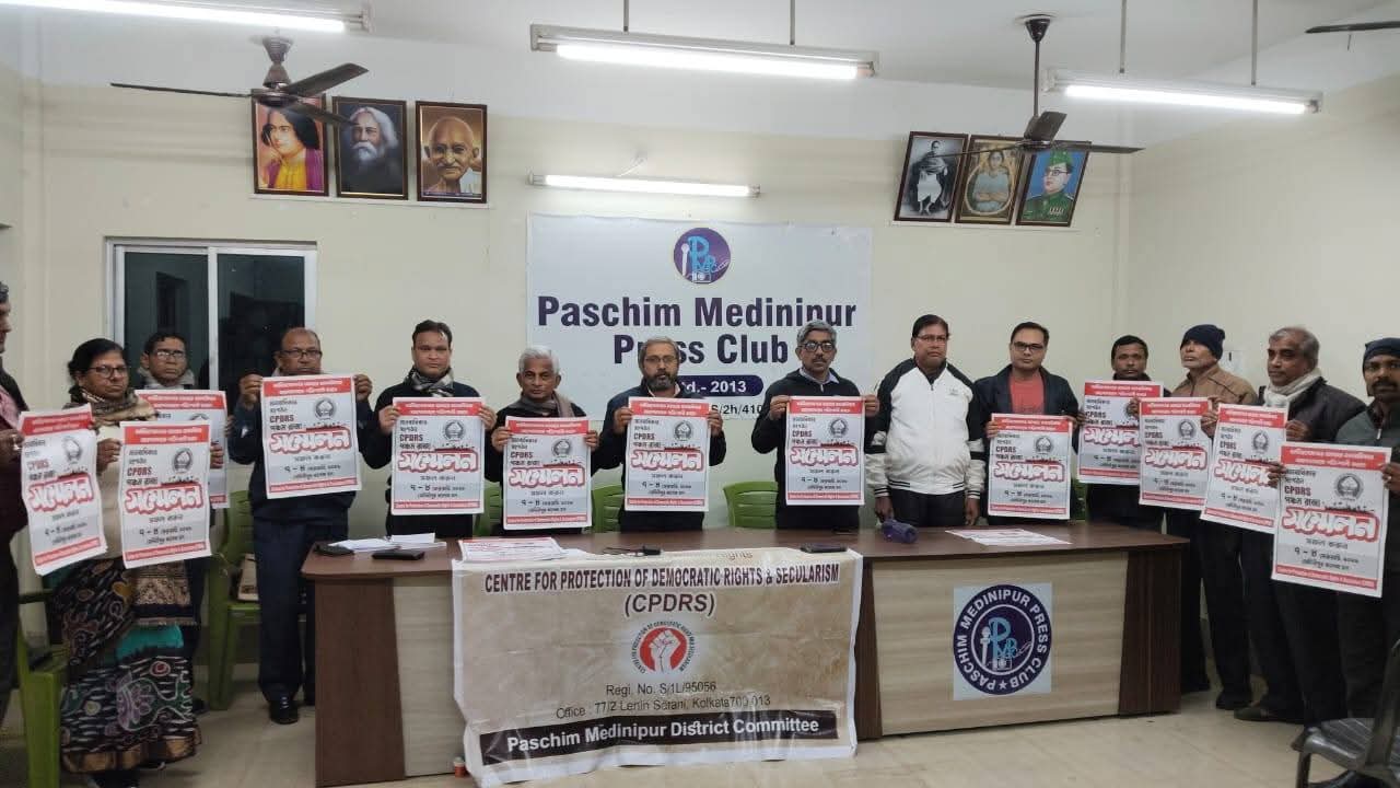 মানবাধিকার সংগঠন সিপিডিআরএস পশ্চিমবঙ্গ রাজ্য কমিটির পঞ্চম রাজ্য সম্মেলনকে সামনে রেখে মেদিনীপুর শহরের প্রেস ক্লাবে সভা